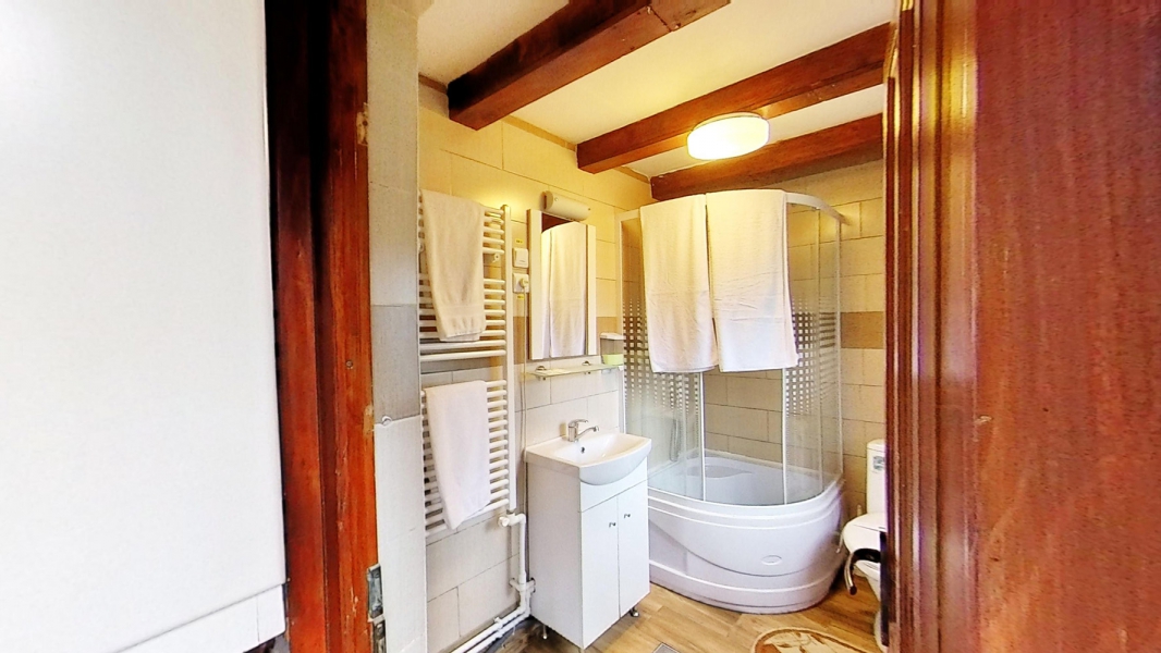 Casuta de vacanta construita din lemn este compusa dintr-o camera tripla, mobilata modern si baie proprie, complet utilata, oferind toate facilitatile pentru a va bucura de confortul dorit.